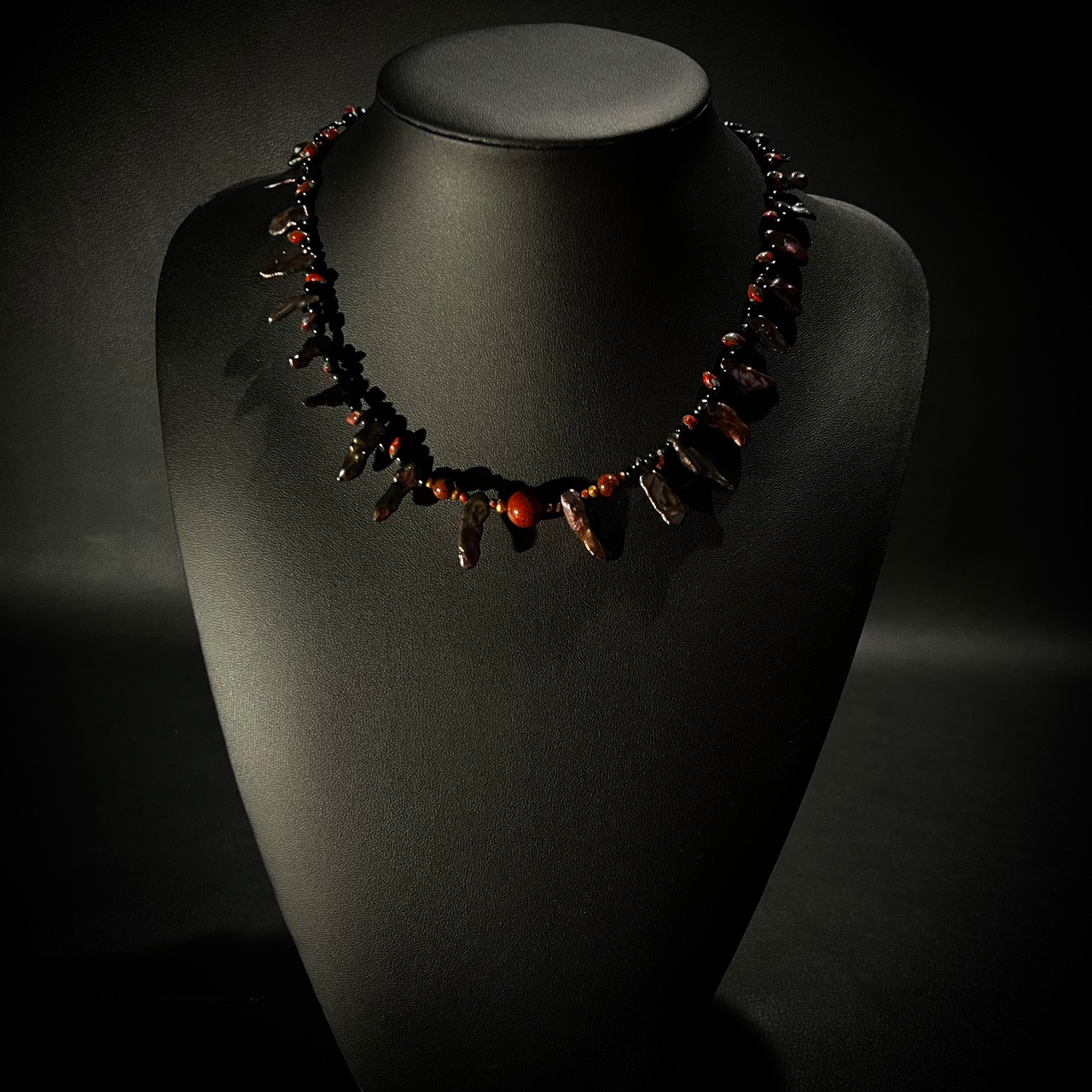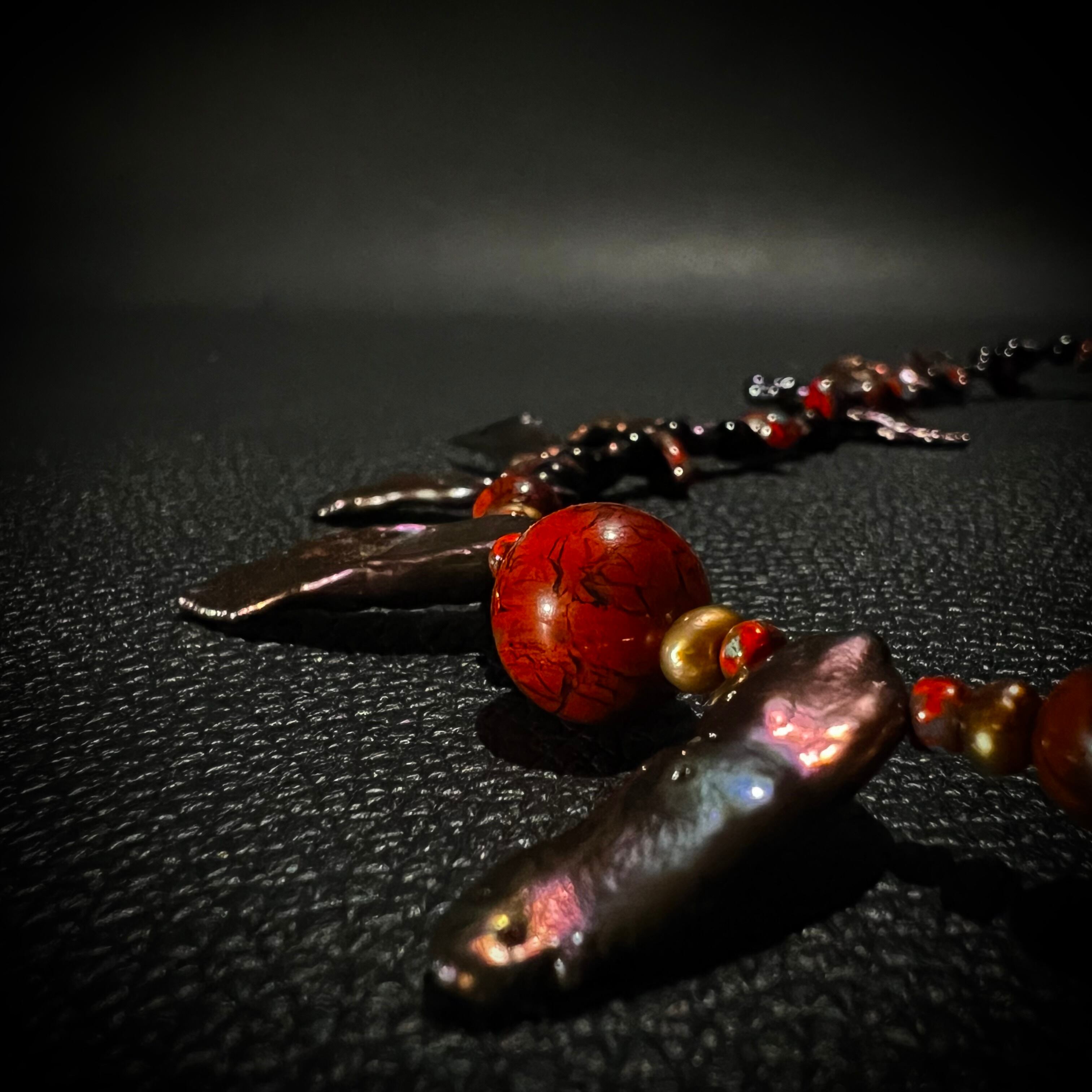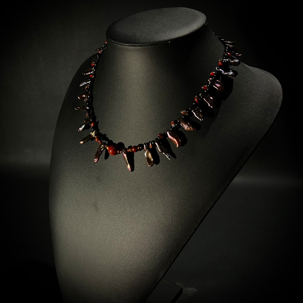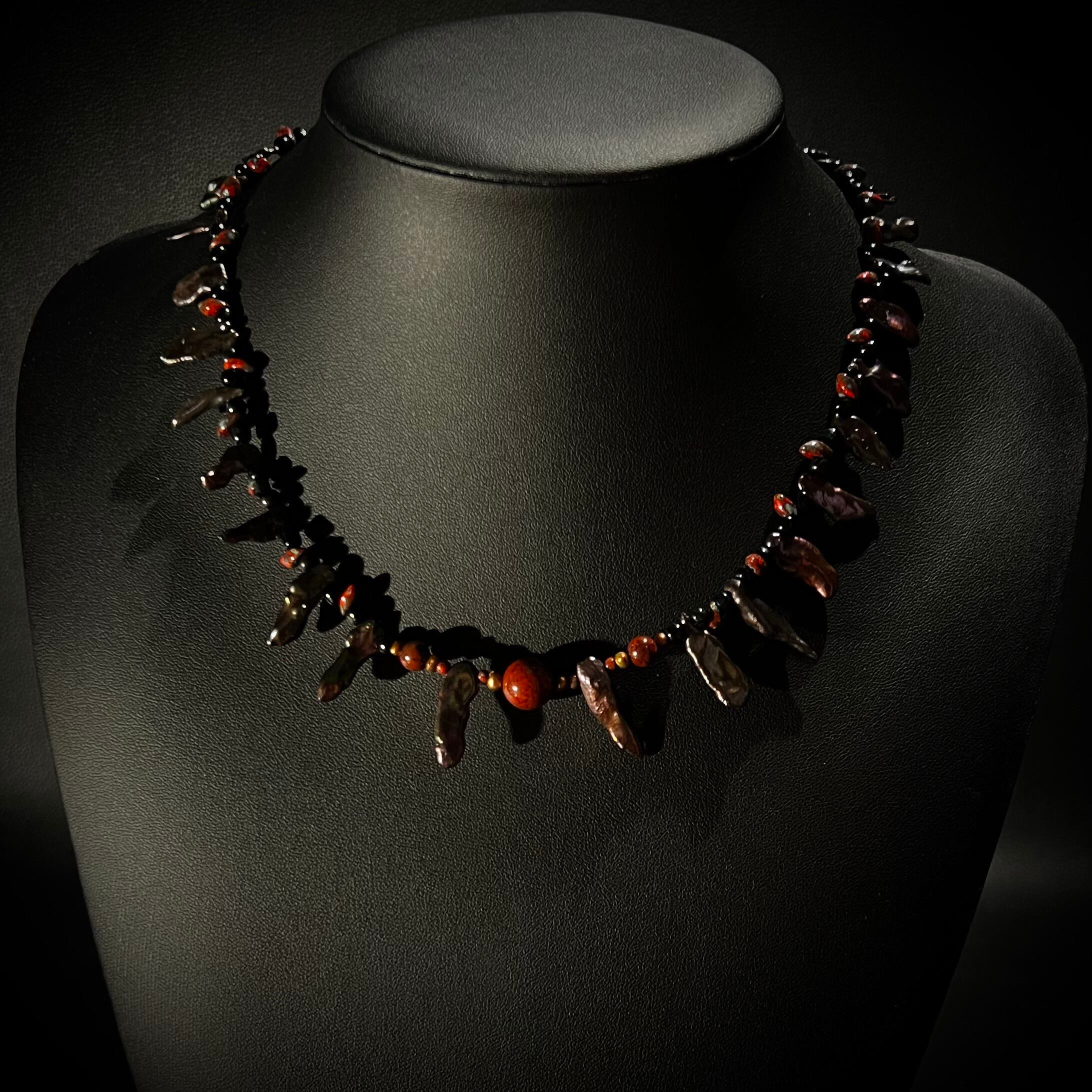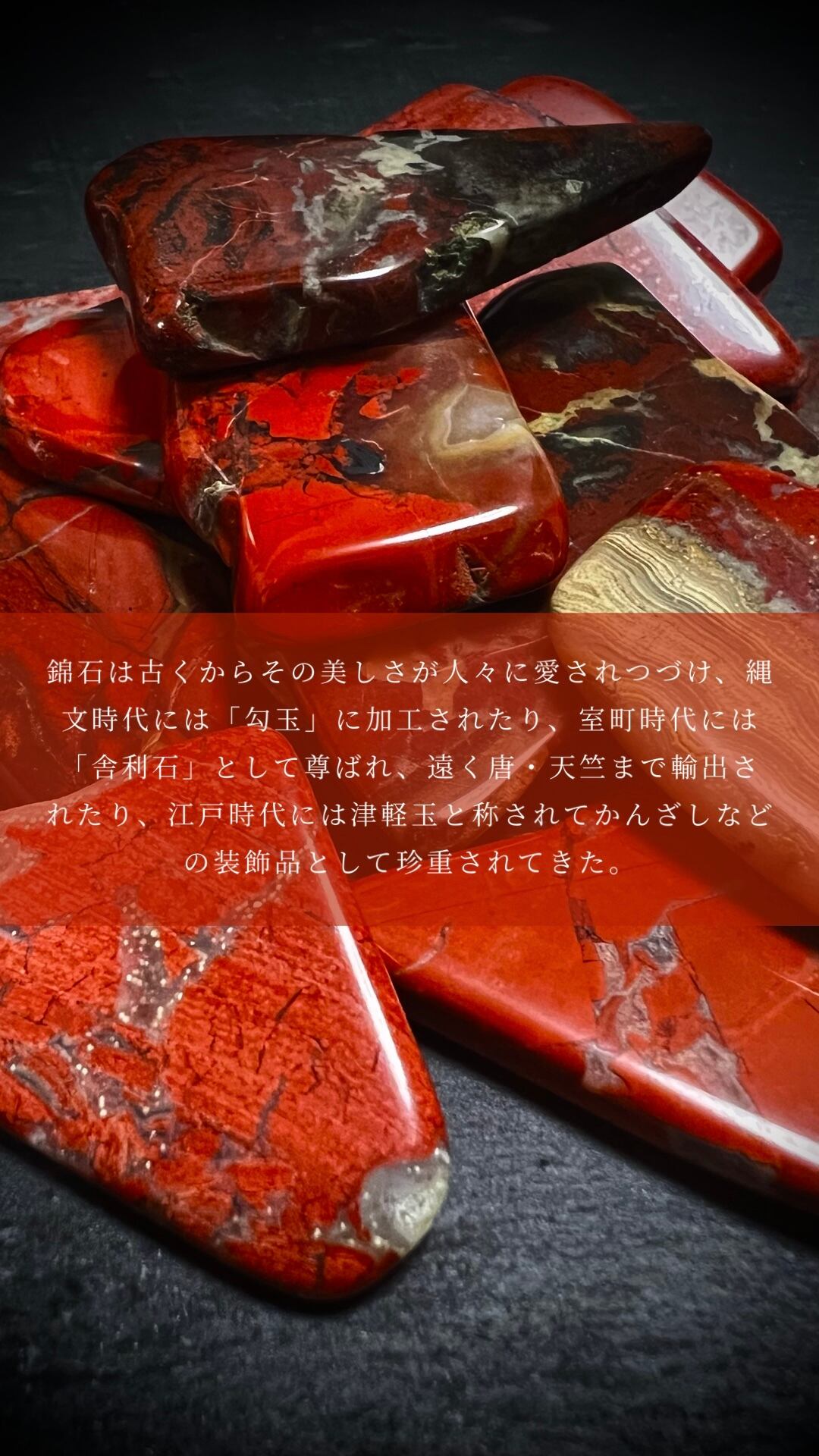 ふんだんに天然石を配置し、編み込み、青森県の伝統工芸品『錦石』を使用。