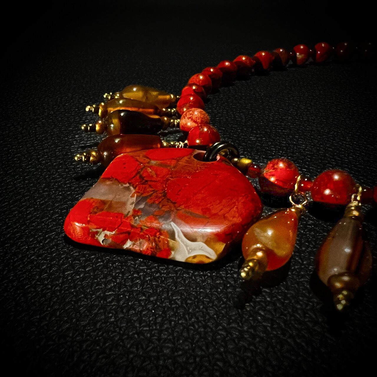 ふんだんに天然石を配置し、編み込み、青森県の伝統工芸品『錦石』を使用。