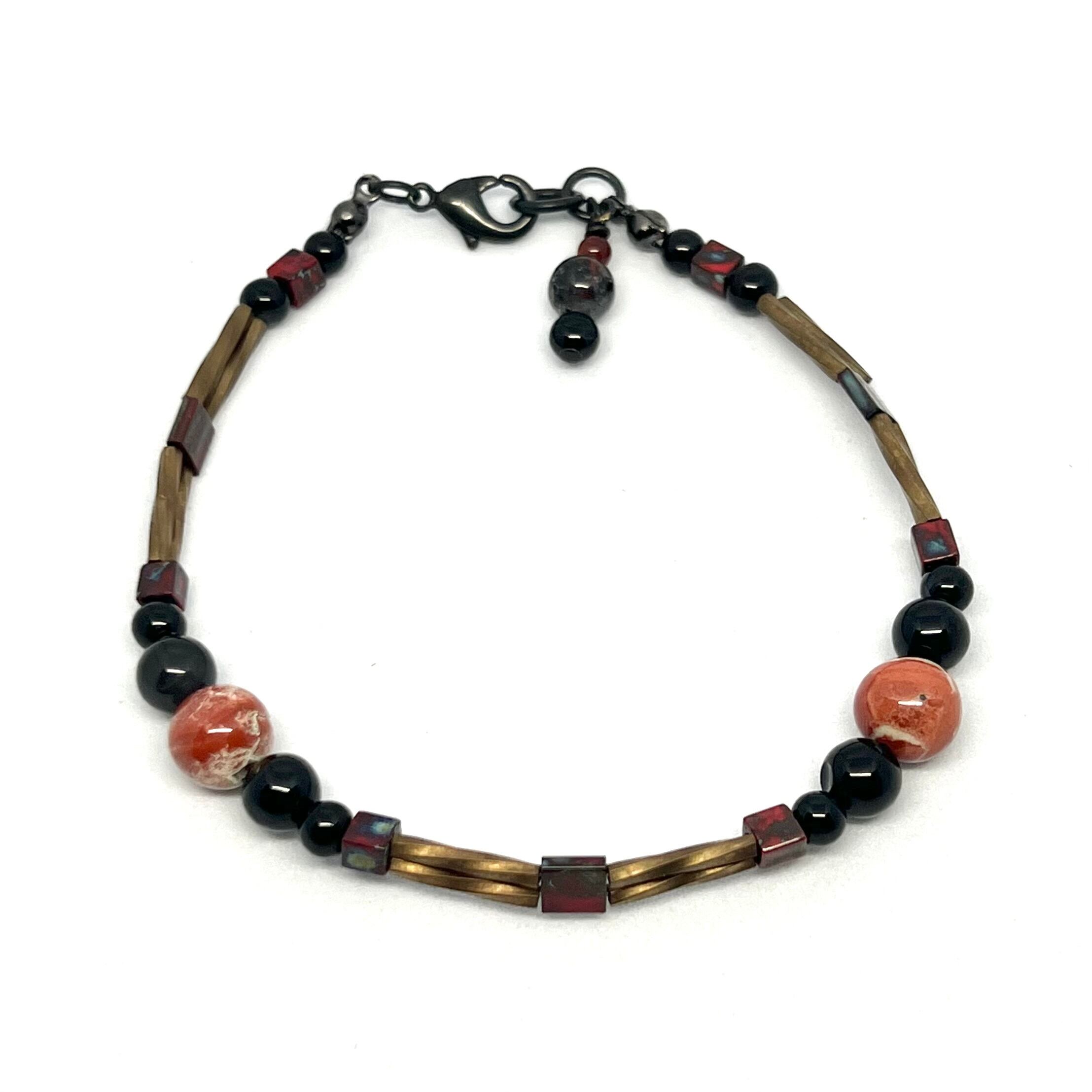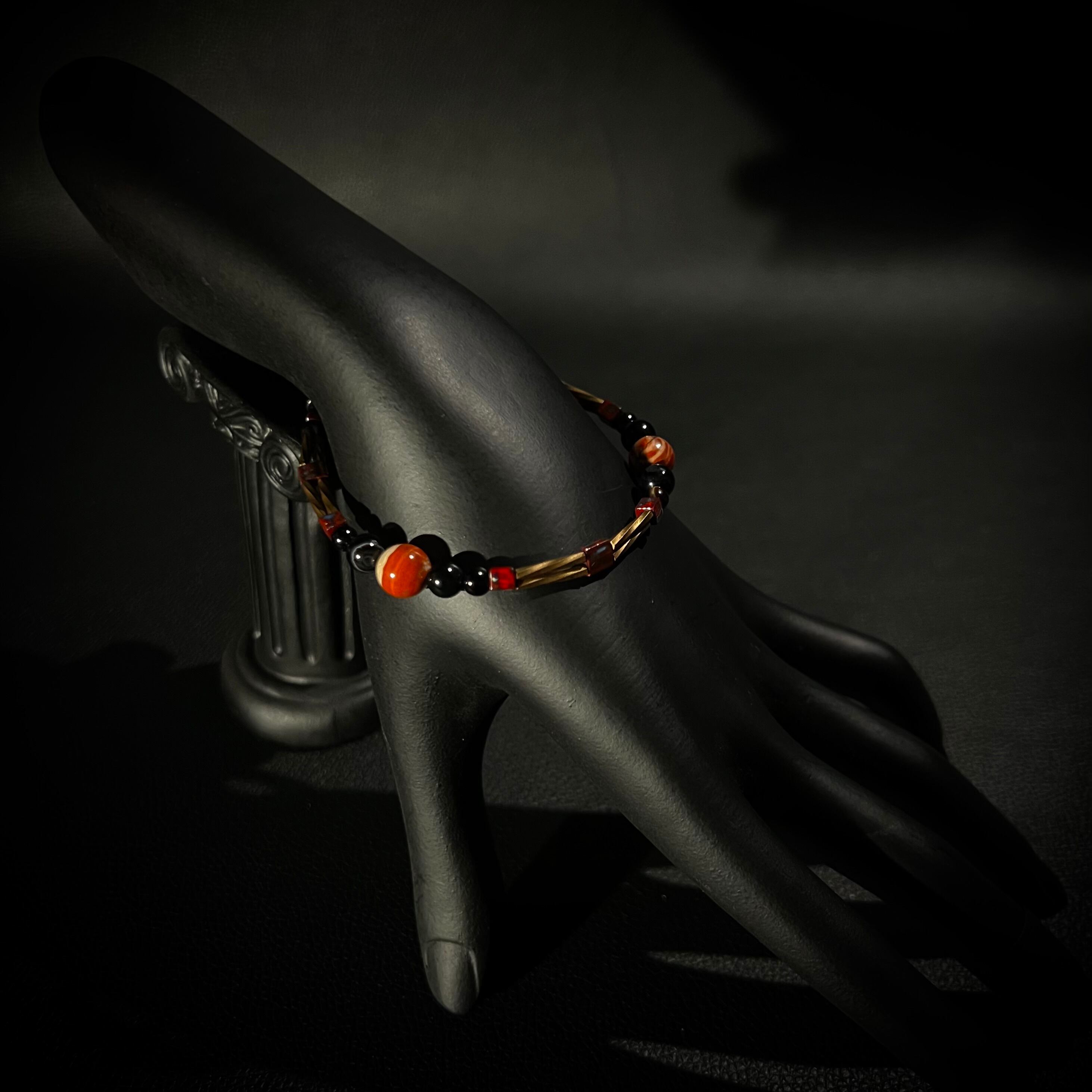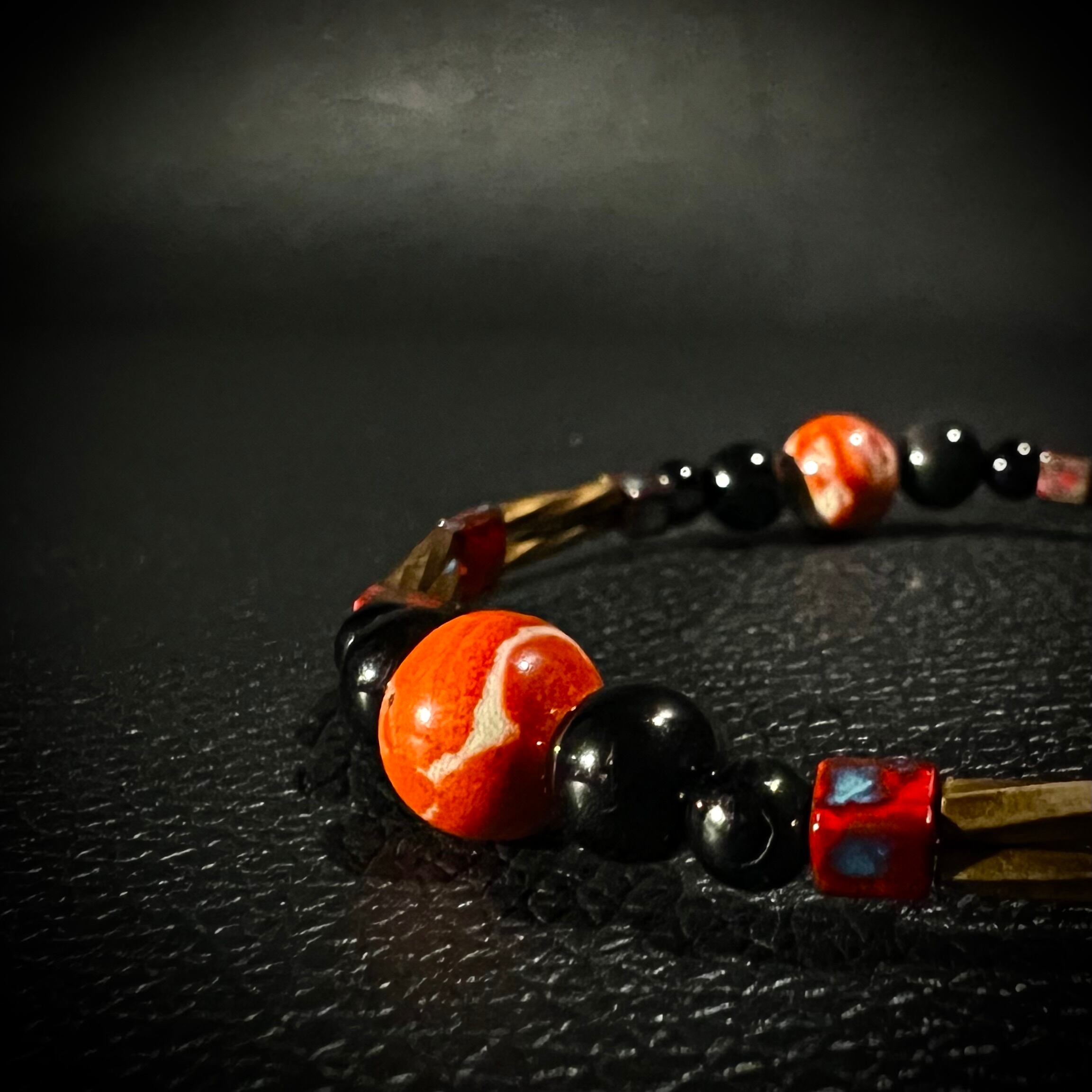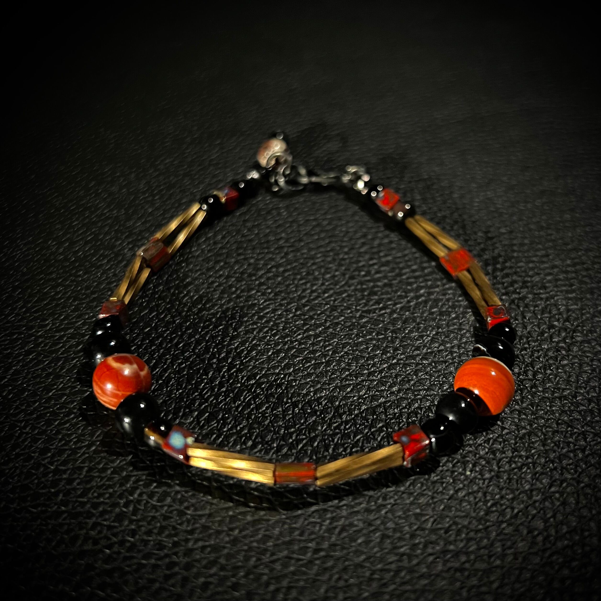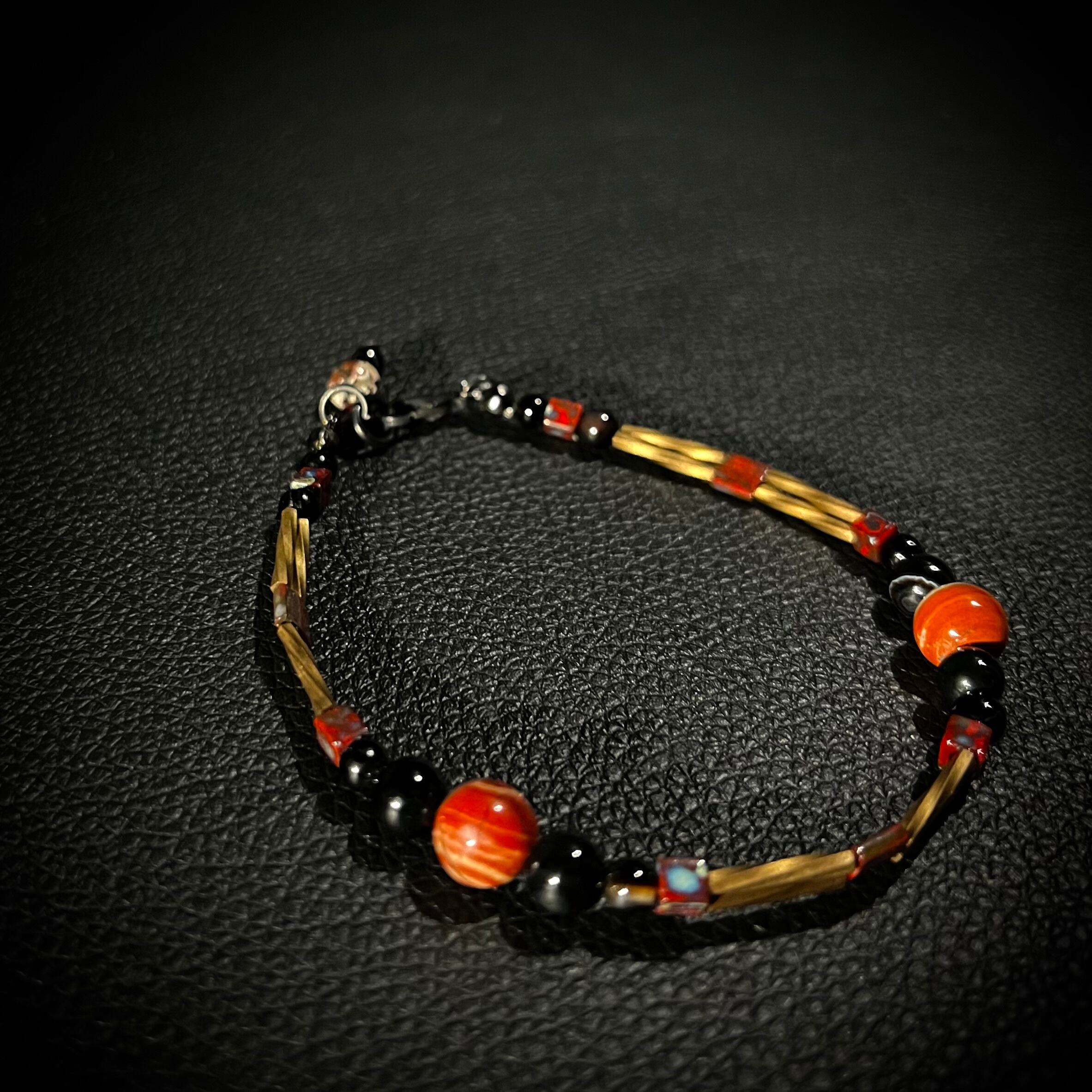 ふんだんに天然石を配置し、編み込み、青森県の伝統工芸品『錦石』を使用。