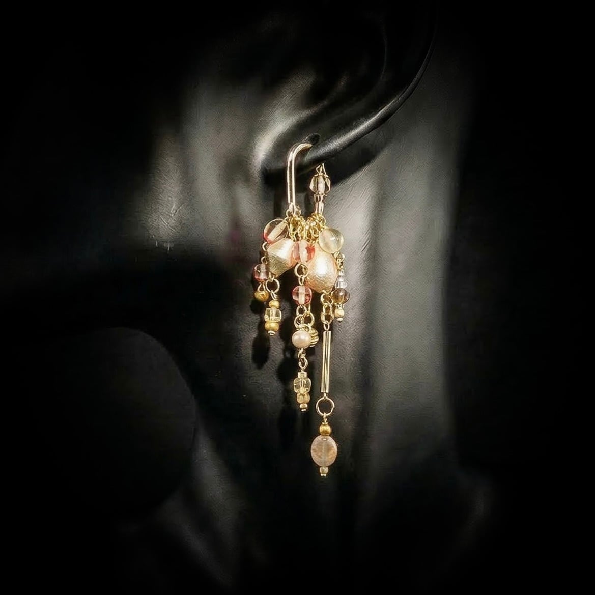 琥珀、チタンポスト、チェコガラス、ブラス
